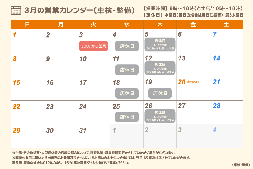 • 3新車割引(新車から初めての車検の方に適用)